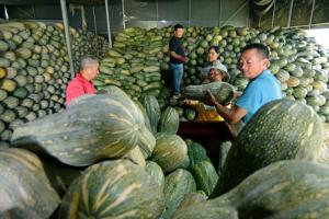 2025年4月16日,安徽省亳州市蒙城县漆园街道一处蔬菜基地,农民为南瓜秧苗进行防病防虫杀菌管理。