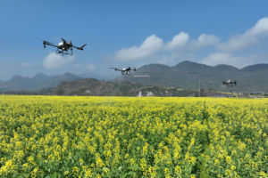 2025年4月16日,安徽省亳州市蒙城县漆园街道一处蔬菜基地,农民为南瓜秧苗进行防病防虫杀菌管理(无人机照片)。