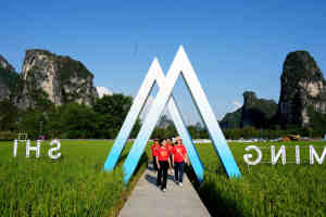 2025年6月5日,在位于长江西陵峡岸边的湖北省宜昌市夷陵区三峡人家风景区,游客在龙津溪游览拍照。