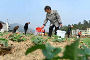 2025年6月13日,在安徽省亳州市谯城区古城镇柴庙村,农户正在为辣椒苗追施肥料。