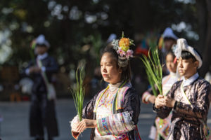 2025年7月27日,贵州省从江县丙妹镇岜沙苗寨的村民在为游客表演节目。