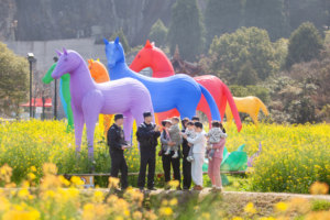 炎炎夏日,湖南省永州市宁远县紫霞岩景区溶洞内流光溢彩,清凉宜人,吸引不少游客前来赏景避暑。