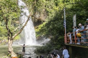 2025年8月25日晨,浙江省宁波市象山松兰山景区,来自四面八方的游客早早来到观日亭附近海滩,静待东海日出。当第一缕金光刺破云层,海天相接处晕染出橘红与金蓝交织的油画,潮声与人潮的惊叹声交融,成为清晨最澎湃的序曲。而在开放的海滨浴场,游客们在尽情地踏浪戏水,与大海亲密接触,冲浪解暑。连日来,松兰山景区凭借其“朝观晨光、昼享碧浪、夜沐海风”的全时魅力,吸引着持续增长的客流,成为长三角避暑版图中的亮眼注脚。