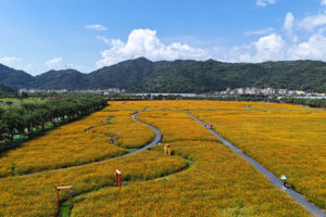 2025年8月27日傍晚时分,在安徽省铜陵市铜官区西湖镇农林村“车站里里”青创空间晚霞伴着灯光,许多市民这里享受惬意时光。