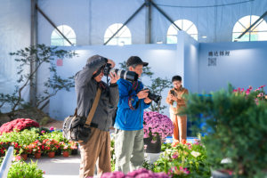 2025年8月28日,人们在北京东单参观“中流砥柱”花坛。