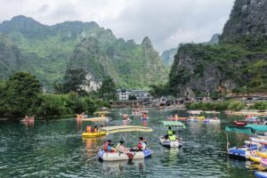 2025年9月13日,辽宁省沈阳市,游客在东陵公园南侧荷花湖内荡舟赏荷。(无人机照片)。