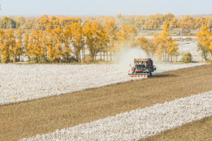 2025年9月13日,在山东省东营市广饶县李鹊镇太和二村的高标准农田里,农民驾驶联合收割机正在收割玉米。(无人机照片)。