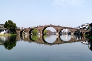 茹公桥,又称苏稽石板平梁桥,始建于清道光二十五年(1845),距今已有近200年的历史。由乐山县“七品皇堂”茹金倡导,怀苏、古市两乡绅商罗仕伦等人出资修建,以连通苏稽三场(苏稽场、沙嘴场、葛老场)。过去苏稽三场被峨眉河相隔,过往行人全靠摆渡或临时便桥,极不方便。而峨眉河属山溪季节河,一遇大雨就暴涨,临时便桥常被冲毁。石桥建成后,极大地方便了两岸人们的往来,对促进苏稽商贸流通起到了积极的作用。为感恩,当地父老乡亲便称“茹公桥”。石桥全长93.5米,共17孔,每孔由五个条石拼成,每石规格为5×0.5×0.4米,全由雅石筑建。1917至1990年间有4次被特大洪水冲坏的记录,其中以民国六年(1917)损毁最大,但冲坏的只是桥和梁,桥墩基础仍安然如故。1958年,桥面由五条石加宽至八条石,桥面由原来的2.4米增加至3.4米。茹公桥历经沧桑,承载着一代又一代苏稽人的记忆,如今旧貌换新颜,长桥卧波美丽依然。