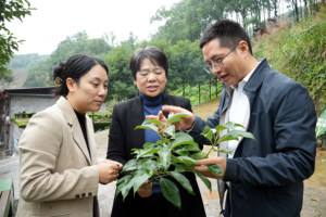 2025年9月24日,在河北省唐山市丰润区火石营镇西马庄户村,果农在教东吕各庄小学学生如何分拣蟠桃。