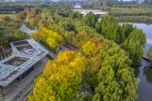 2025年9月25日,四川省巴中市通江县,俯瞰将水沟变成的“口袋”公园谭家河湿地公园。