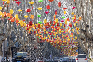 2025年9月26日,重庆市沙坪坝区天马路,道路两旁悬挂着鲜艳的五星红旗,洋溢着浓浓的节日氛围。