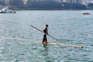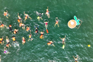 2025年10月4日,安徽省铜陵市游泳爱好者在长江岸边跳台上开展跳水运动,一个个灵动的身影依次跃入水中,在空中划出一道道弧线,激起层层水花,为假期增添一抹别样的色彩。