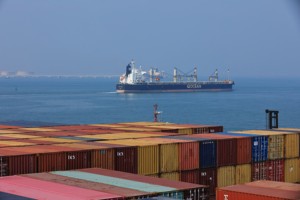 2025年10月10日无人驾驶货运汽车到达终点站卸货中。