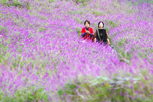 游客在江苏省兴化市千垛镇东罗村乡村文旅大集上游玩拍照(2023年3月31日摄)。