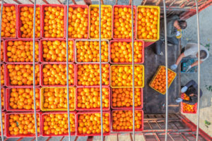 2025年10月20日,安徽省亳州市谯城区五马镇后孙庄村柿子生产基地,果农正在采摘成熟的柿子,供应市场。 近年来,安徽省亳州市谯城区按照“一村一品”发展思路,引导村民大力发展柿子、猕猴桃、梨子等水果产业,拓宽村民增收致富渠道,助力乡村振兴。