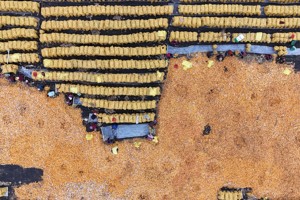 10月21日,在甘肃省平凉市静宁县雷大镇陈局村,果农在用无人机搬运苹果。