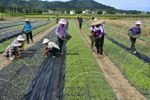 10月22日,在广西河池市罗城仫佬族自治县黄金镇黄金社区的蔬菜大棚,村民们正忙着采收长势喜人的蔬菜。