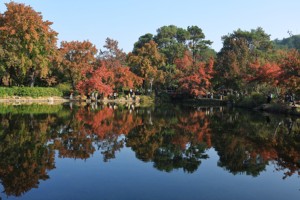 2025年10月31日,新疆维吾尔自治区喀什地区泽普县金湖杨国家森林公园秋色宜人,游客饱览秋日美景。