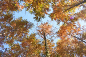 2025年11月13日,冬日暖阳下,广安月湖邻里公园披红戴绿,美不胜收。(无人机照片)