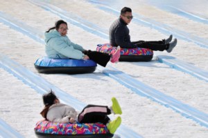 2025年11月13日,位于浙江省湖州市南浔区南林公园内,附近市民家长带娃在公园运动场和草坪上游玩嬉戏,尽情享受湖州首个秋假带来的快乐。