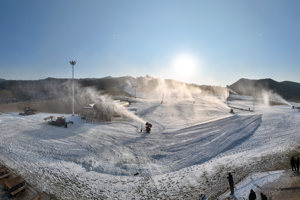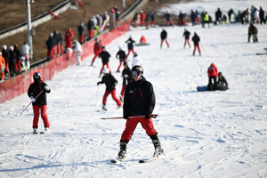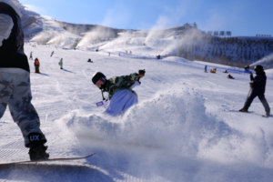 2025年11月15日,滑雪爱好者在内蒙古自治区扎兰屯金龙山休闲度假旅游区戏雪。