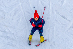2025年11月15日,在内蒙古自治区扎兰屯金龙山休闲度假旅游区,小朋友学习滑雪。