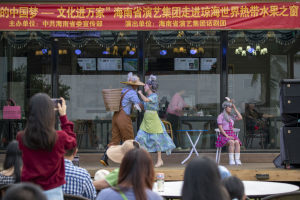 2025年11月21日晚,福建省福州市台江区的闽江之心海丝广场,福建省海峡残疾人艺术团“看到”组合正在表演节目。