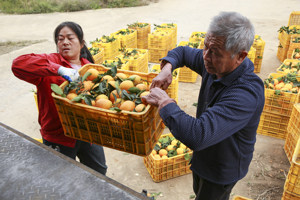 11月22日,游客在山东省青岛市城阳区上马街道大集上选购柑橘。
