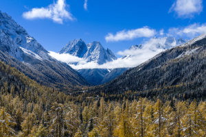 2025年11月5日,拍摄于四川省阿坝州小金县四姑娘山双桥沟景区(无人机照片)。