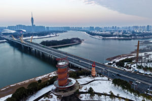 2025年11月29日,云南省红河哈尼族彝族自治州弥勒市甸溪河湿地公园,河岸青黄交错行道树把蜿蜒走道装扮得如诗如画,构成一幅五彩缤纷的初冬画卷。(无人机照片)