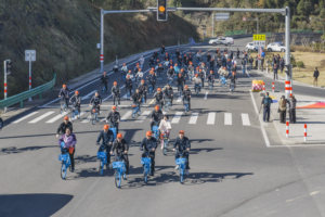 2025年11月29日,海南省琼海市参与马拉松预热赛的市民赛前合影留念。