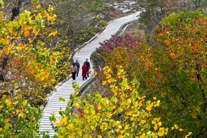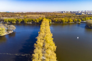 2025年11月29日,江苏省南京市,钟山风景名胜区层林尽染,美龄宫犹如一颗镶嵌在项链末端的宝石,美不胜收。