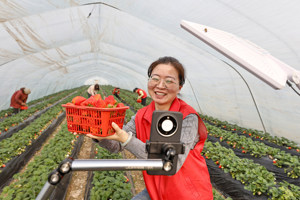 2025年12月10日,山东省邹平市魏桥镇郑家村草莓基地,农户在采摘头茬草莓。