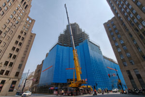 2025年12月11日,工人在沪渝蓉高铁泰州段进行施工作业(无人机照片)。
