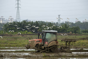 2025年12月11日,海南省琼海市大批白鹭在博鳌镇田野上觅食。