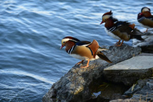 2025年12月11日,进入冬季,北京颐和园昆明湖水面开始结冰,一群群鸳鸯和绿头鸭有的在游弋戏水、有的在冰面上晒太阳,十分可爱
