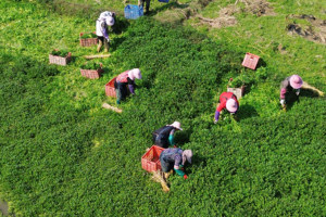 2025年12月24日,湖南省永州市新田县中山街道潭田村,村民在冒雨抢收蔬菜。连日来,湖南省新田县农民克服近期的低温雨雪天气,头戴斗笠身披雨衣冒雨采收蔬菜,全力保障冬季“菜篮子”供应。