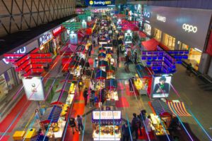 2026年1月10日,在广西来宾市忻城县城关镇板河村拍摄的窑鸡烧烤露营地夜景(无人机照片)。