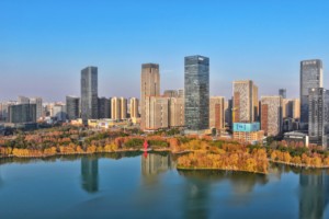 2026年1月11日,贵州省黔西市护城河绿岸与碧水相映成景,清澈的河水潺潺流淌,景美如画。