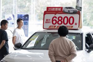 2026年1月11日,浙江省金华市婺城区西市街商圈一家大型购物广场,消费者在汽车专卖店选购国产新能源汽车。