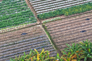 2026年1月13日,航拍贵州省黔西市莲城街道老鸹河社区的坝区农业,稻田里绿油油的油菜、麦苗,村庄和远山构成一幅美丽的画卷。