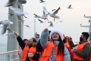 受寒潮天气影响,连日来,山东省荣成市迎来持续降雪。2026年1月18日,荣成市北部沿海的布鲁威斯沉船景点,雪花飘洒间勾勒出独特景致,吸引众多游客前来赏雪游玩、拍照打卡,与海鸥共赏冬日美景。尽管气温走低,游客们兴致不减,或漫步雪中,眺望海天之间的皑皑雪景,或以雪中沉船为背景,定格难忘瞬间。白雪与沉船相映成趣,为海岸增添了别样的冬日韵味。据了解,布鲁威斯沉船作为荣成沿海的独特地标,近年来已成为摄影爱好者和游客青睐的打卡胜地。此次降雪让自然雪景与人文景观巧妙交织,再次展现了荣成海岸的独特魅力。