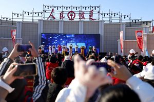 2026年1月17日,参加甘肃省大众滑冰挑战赛的青少年组选手,在2025-2026全国大众室外速度滑冰挑战赛(甘肃站)暨“巩固和扩大‘带动三亿人参与冰雪运动’成果”甘肃省大众滑冰挑战赛比赛现场载歌载舞,欢庆比赛开幕。