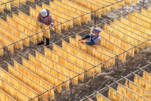 2026年1月17日,在贵州省黔东南苗族侗族自治州榕江县古州镇车江坝区田间,村民忙着采摘、搬运、打包红菜薹,供应市场。 贵州省榕江县车江坝区土质肥沃,在当地政策扶持和技术指导下,当地村民引进周期短、风险低、见效快的红菜薹进行规模化种植,不仅助力群众持续增收,还丰富城乡居民的菜篮子。