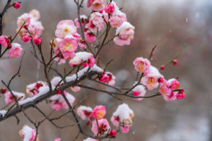 2026年1月18日,在湖南省常德市澧县澧阳生态公园,梅花在寒风中绽放。