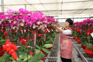 2026年1月20日,在山东省青州市弥河镇一家绿植种植基地,农民在管护仙人球。