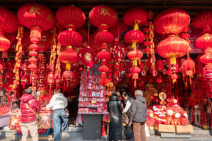 2026年1月20日,人们在山东省青岛市李沧区李村大集选购新年饰品。