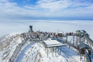 2026年1月21日,位于浙江省湖州市安吉县境内的龙王山,伴随着一场降雪之后,云雾缭绕在群山之巅,山峦银装素裹,枝头玉树琼花晶莹剔透,吸引大批徒步爱好者前来观赏打卡、享受冬日浪漫。