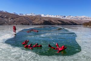 红崖台地位于内蒙古乌兰察布市四子王旗北部,山体呈现红色,随季节变化深浅交替,为典型的丹霞地貌,南北长约15公里,东西宽约10公里,当地人称“大红山”,是四子王国家地质公园的重要组成部分。隆冬时节,雪色点缀下的红崖台地色彩浓烈,景色壮美。