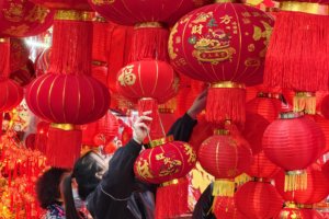 2026年1月28日,安徽省阜阳市一家商场黄金店店员在整理黄金饰品。